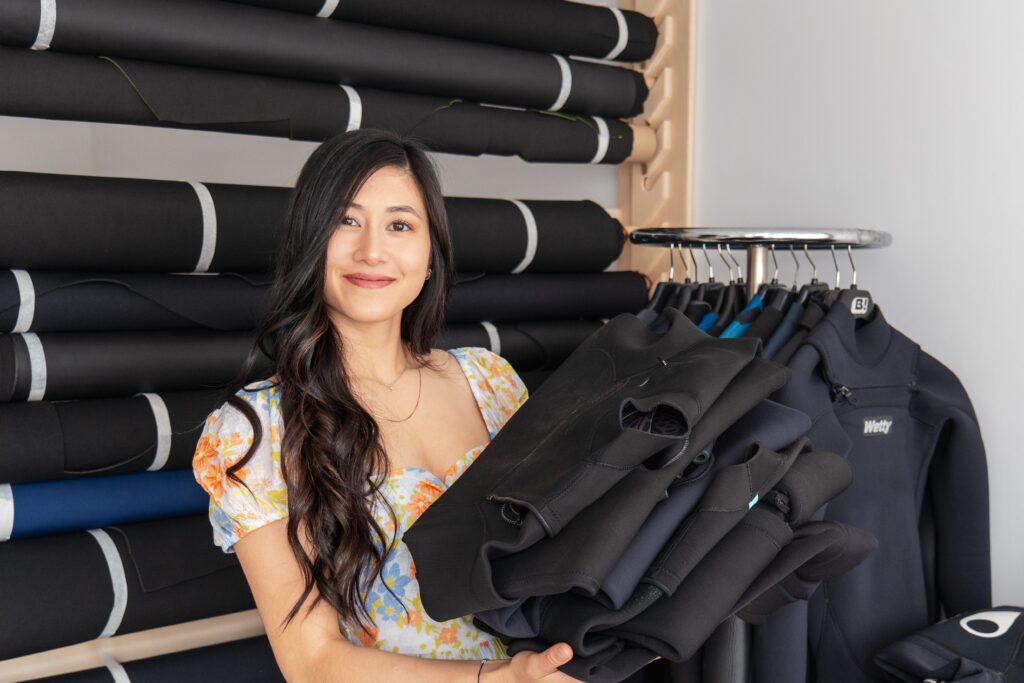 👉 TEARING WAVES est un atelier artisanal fondé et animé par My-Lane, une couturière passionnée qui nous offre son savoir-faire en couture pour réparer nos chères combinaisons en néoprène. L’objectif de l’atelier est de prolonger la vie des combi, éviter la surconsommation et réduire les déchets liés à l’industrie du surf!